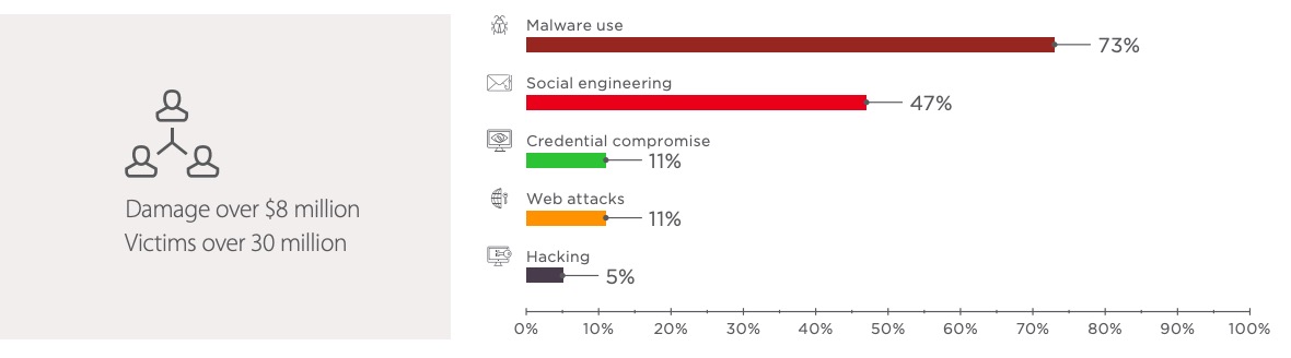 We will take a closer look at each attack method and indicate which targets and industries were most affected.
