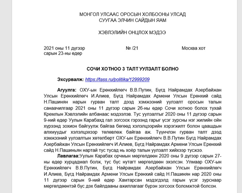 PT ESC detected ongoing attacks by the TA428 APT group in Mongolia. In one of its attacks on Mongolian government agencies, the group used a phishing document about a trilateral diplomatic meeting between Russia, Armenia, and Azerbaijan. The document was created using the Royal Road tool, which generates malicious RTF files that exploit the CVE-2018-0802, vulnerability, and equipped with a payload in the form of the nccTrojan RAT.