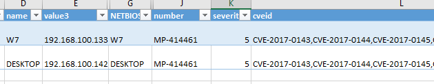- Export the list of vulnerable nodes (NETBIOS columns or value3).