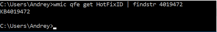> wmic qfe get HotfixId | findstr KB_for_OS.