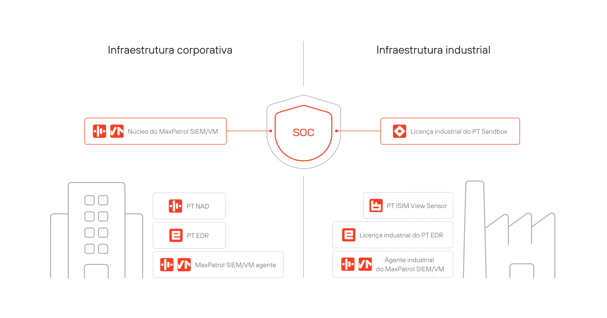 O PT ICS foi desenvolvido para segmentos tecnológicos de empresas industriais. Se sua empresa já possui produtos da Positive Technologies instalados para proteger a rede corporativa, você só precisa ampliar as licenças atuais para cobrir o segmento de OT. Os especialistas da empresa continuarão usando as ferramentas de segurança da informação aos quais estão acostumados.